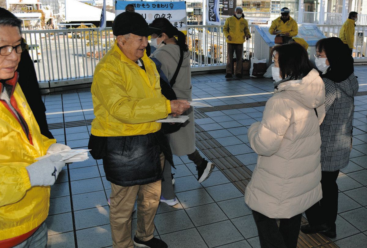 ロシアのウクライナ侵攻3年に合わせ、NPO法人「湘南ふじさわシニアネット」がウクライナを支援しようと、神奈川県藤沢市内の街頭でヒマワリ…