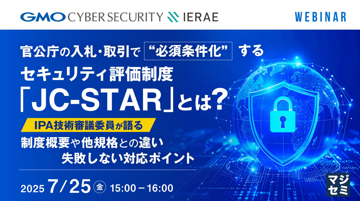 マジセミ株式会社のプレスリリース(2025年7月7日 09時00分)『官公庁の入札・取引で“必須条件化”するセキュリティ評価制度「JC-STAR」とは?
