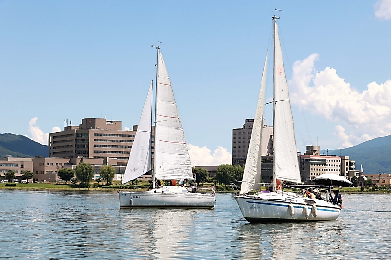 NPO法人諏訪市セーリング協会は21日、諏訪湖でヨット体験会を開いた。市内外の約20人が参加し、同協会員所有のヨット5艇に分乗。この日は風が弱かったが、参加した子どもらは、青空の下でいつもとは違う体験に目を輝かせていた。 諏訪湖の自然に親しんでもらおう―と協会が…