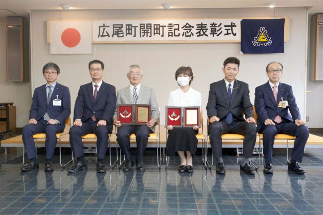 【広尾】広尾町開町記念表彰式が18日、町コミュニティセンターで開かれた。2個人1団体に功労表彰、1個人7企業に感謝状を贈った。
