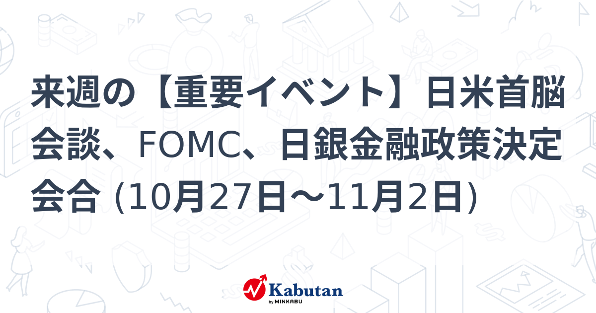 - 来週の【重要イベント】日米首脳会談、FOMC、日銀金融政策決定会合 (10月27日~11月2日)