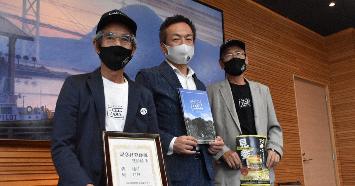 6月6日が「六連の日」として記念日に制定されたことを受けて、下関市六連島の六連島自治会、武島正文会長(71)と植村秀彰副会長(67)は3日、市役所を表敬訪問した。記念日を認定する一般社団法人「日本記念日協会」に申請して登録され、記念日登録証を前に前田晋太郎市長は「すばらしい。六連島がいろいろな人に