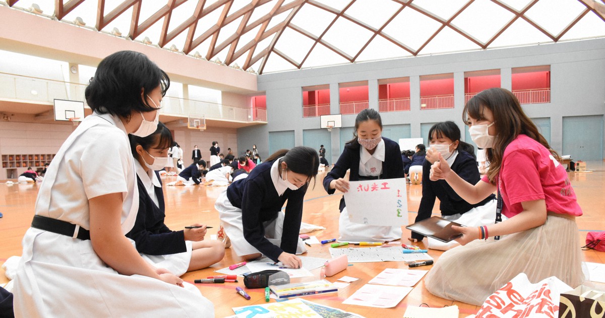 神戸市灘区の私立松蔭中・高校を卒業した大学生らでつくるNPO法人「Blue Earth Project(BEP・ブルーアースプロジェクト)」は、環境保全活動に取り組んでいる。5月、2年ぶりの対面での啓発イベントを同校で開き、後輩ら約100人に「普段着ている服が環境に与える影響を一緒に考えよう」と呼