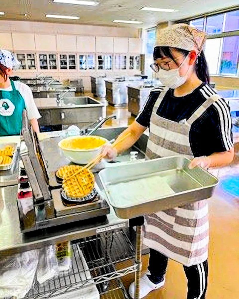 【白糠】町内で子どもや高齢者の居場所づくりに取り組むNPO法人「陽向ぼっこ」と藤女子大の学生が、高齢者向けの焼き菓子のワッフルづくりに共同で取り組ん …