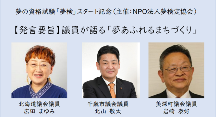 【発言要旨】現職の議員が語る「夢あふれるまちづくり」(NPO法人夢検定協会 プレスリリース)