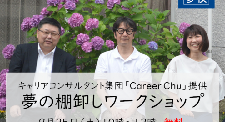 NPO法人夢検定協会のプレスリリース(2021年9月10日 10時)。 NPO法人夢検定協会(本部:東大阪市森河内西2-36-15、代表理事:琵琶博之)は、8月23日にキャリアコンサルタント集団「Career Chu」(代表:村尾修)と法人向け研修プログラム提供に向けて業務提携をしました。今回、「Career Chu」のメンバーを講師に迎え、9月25日に、会場とオンラインのハイブリッド形式にて、夢の棚卸しワークショップを共同開催しますので、お知らせさせて頂きます。