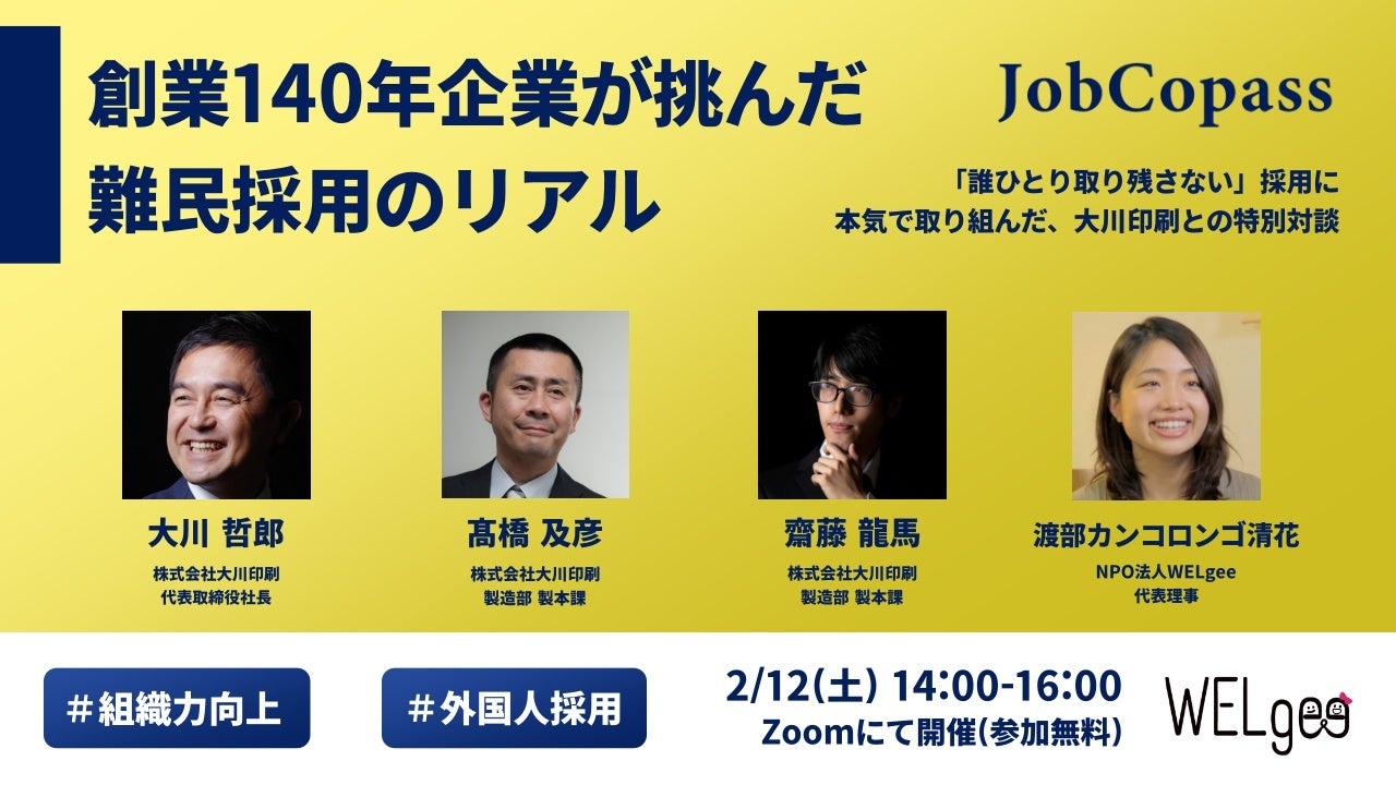 NPO法人WELgeeのプレスリリース(2022年1月16日 11時14分)創業140年企業が挑んだ、難民採用のリアル。「誰ひとり取り残さない」採用に本気で取り組んだ、大川印刷との特別対談を開催!