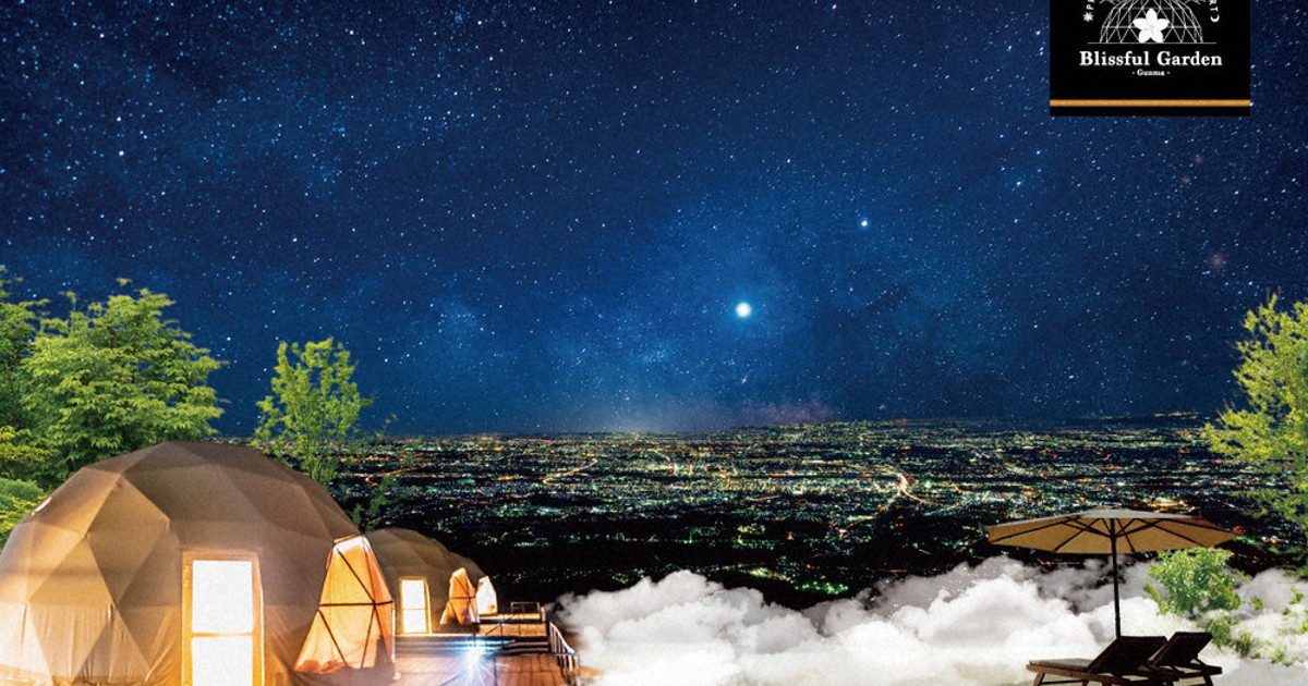 人工雲海で幻想的な夜景を演出 前橋市内のリフォーム工事などを手がける施工会社「伸栄建窓」は、渋川市北橘町に昨年12月にリニューアルオープンした日帰り温泉施設「komorebiテラスばんどうのゆ」の隣接地に、豪華なキャンプを体験できるグランピング施設を4月にオープンさせると発表した。