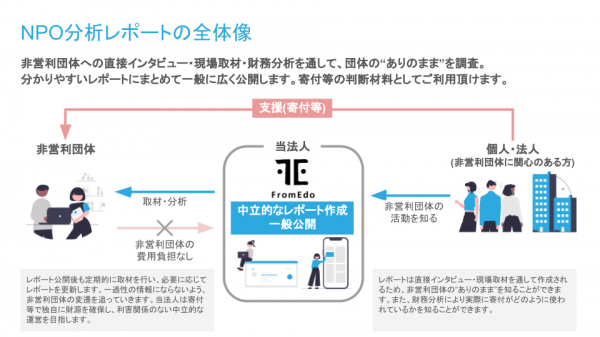 … フロムエド(東京都港区、代表理事 吉嵜文保)は、中立的な視点で非営利団体を分析・調査する「NPO分析レポート」プロジェクトを新たに開始しました。