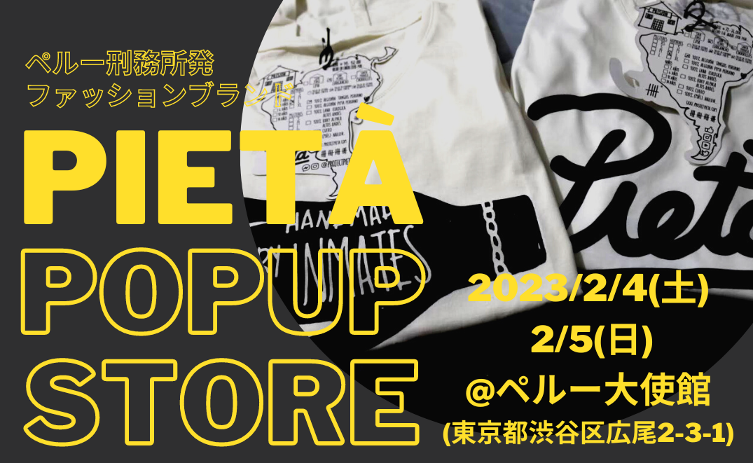 【2/4(土),2/5(日)】(恵比寿付近)昨年大好評のペルー刑務所発ファッション<Pietà>、今年もペルー大使館でポップアップストア開催!