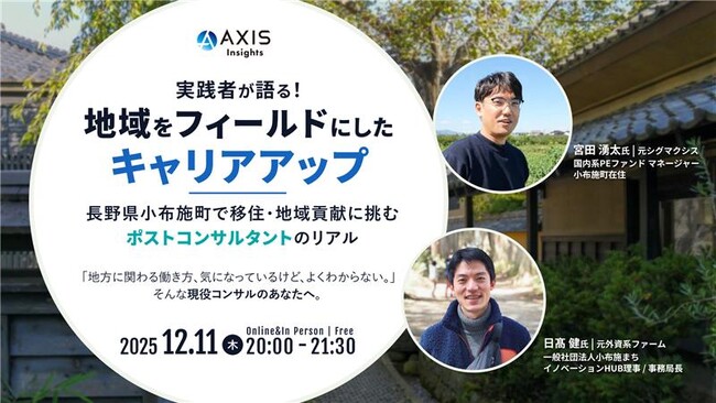 「あらゆる課題は、人で解決する。」をコーポレートステートメントとするアクシスコンサルティング株式会社(本社:東京都千代田区/代表取締役社長 COO:伊藤 文隆)は、2025年12月11日(木)午後8時より、オンライン・オフライン同時開催セ…