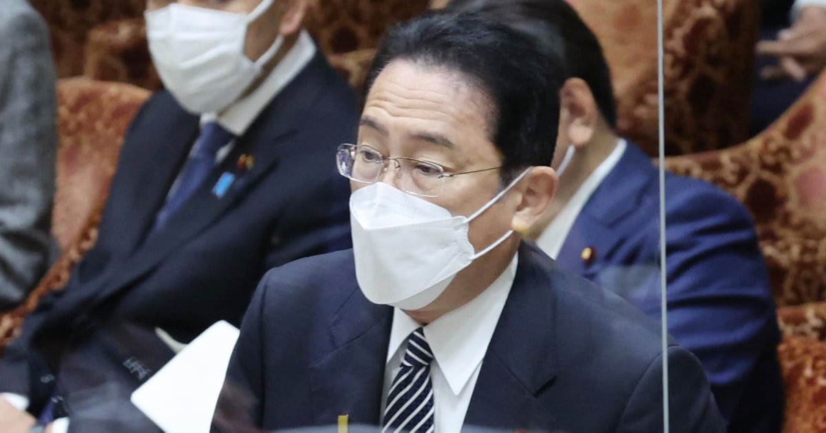 衆院予算委員会でワクチンの3回目接種について1日100万回を目標にする方針を表明する岸田首相(7日午前、国会で)=源幸正倫撮影.