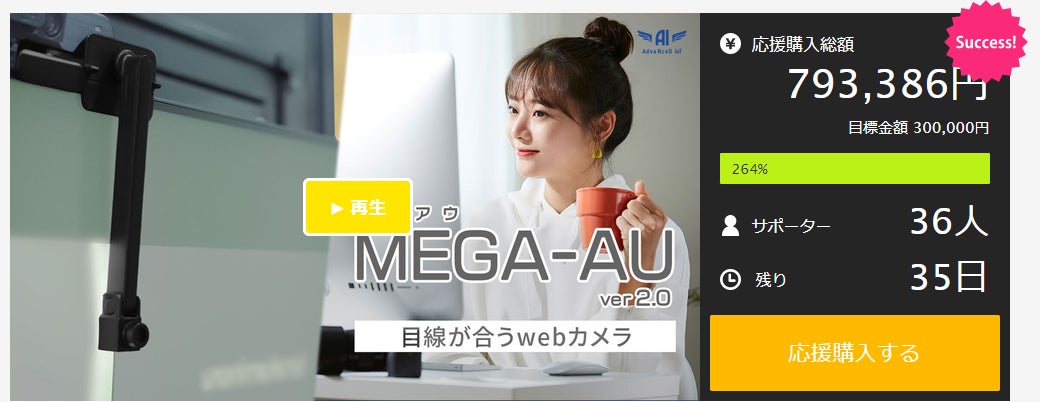 【開始1時間で目標達成!】Makuake開始3日目で目標金額の200%を突破した大注目の”想いが伝わる”Web会議専用カメラ「MEGA-AU ver2.0」