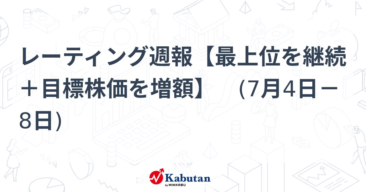 - 【特集】レーティング週報【最上位を継続+目標株価を増額】 (7月4日-8日) - 株探