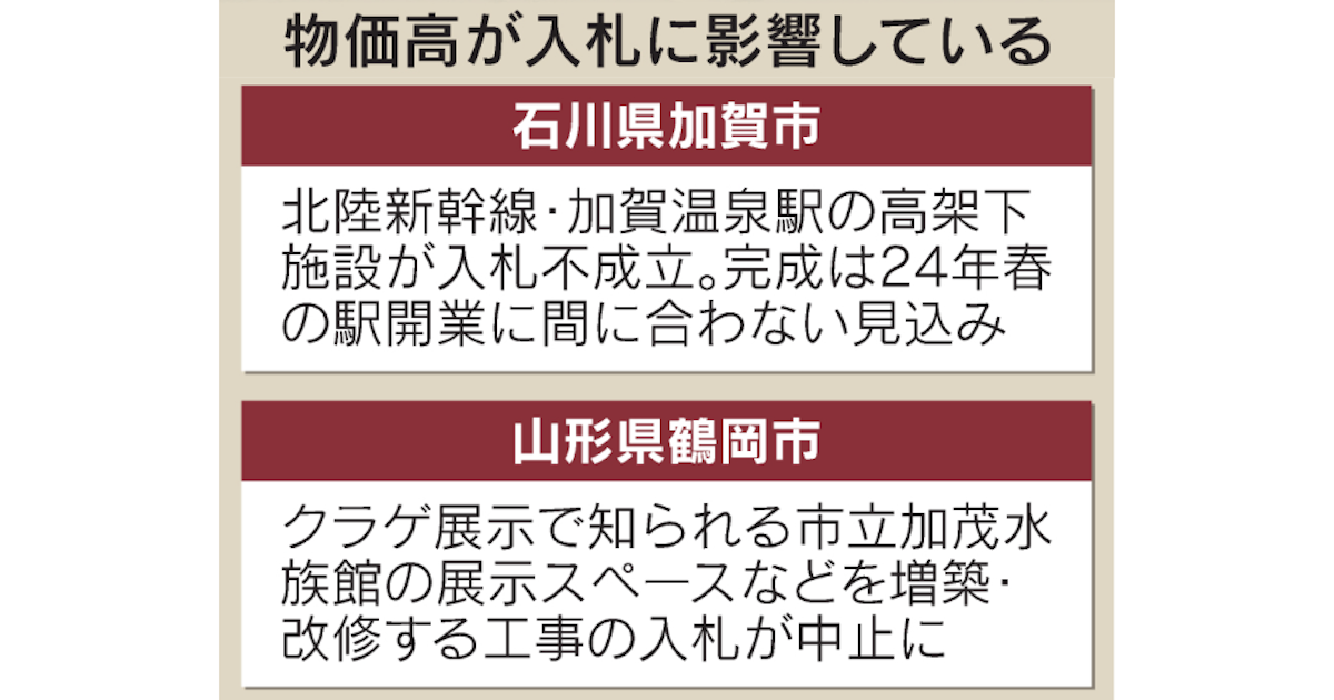 - 物価高で自治体施設「着工できない」 入札不成立で開業延期も - 日本経済新聞