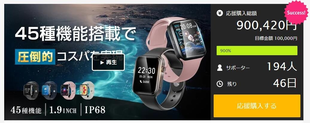 - 【公開僅か30分で目標達成!】「全45種類の機能搭載×お手頃価格」を実現するスマートウォッチ ...