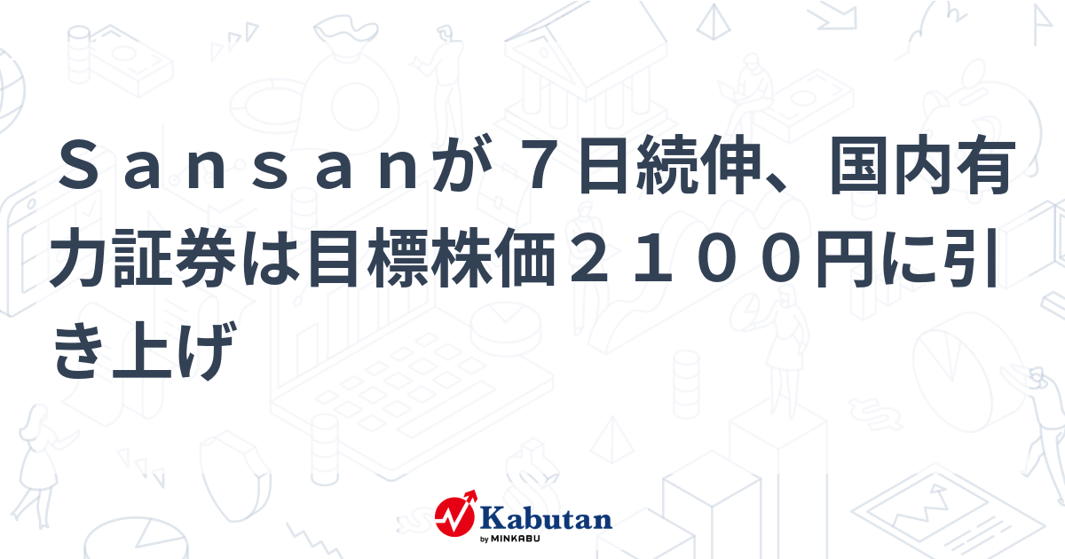 - Sansanが 7日続伸、国内有力証券は目標株価2100円に引き上げ - 株探(かぶたん)