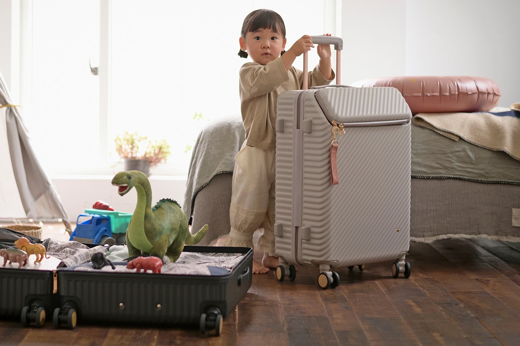 - お盆の帰省など、子連れ旅行が快適になる機能搭載!ママ目線で開発した“こどもと旅するスーツ ...