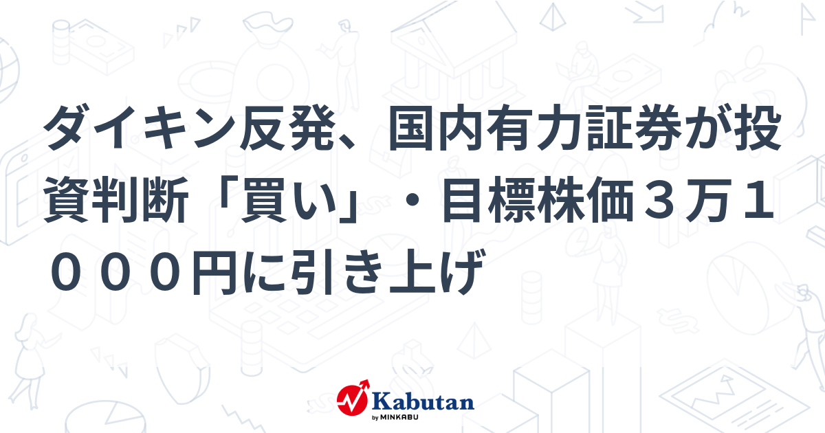 - ダイキン反発、国内有力証券が投資判断「買い」・目標株価3万1000円に引き上げ - 株探