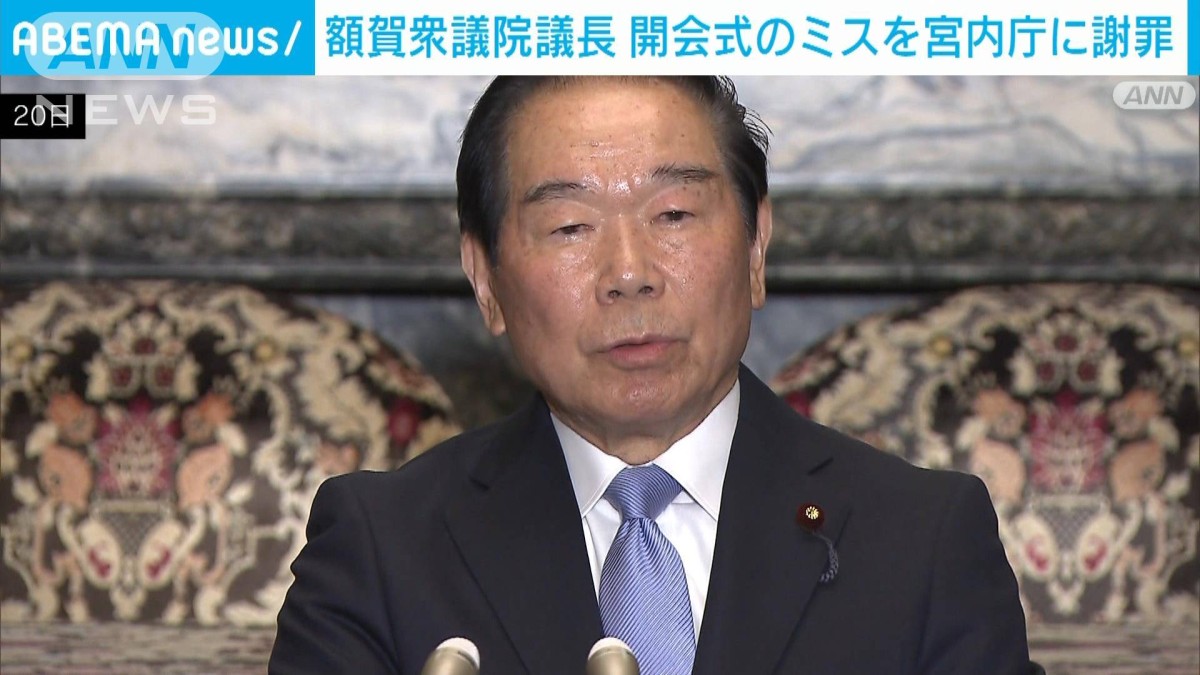 額賀衆議院議長は、就任直後の臨時国会の開会式で天皇陛下に誤って式辞の紙を手渡したミスを巡り、皇居を訪れ、宮内庁側に謝罪していたことが分かりました。