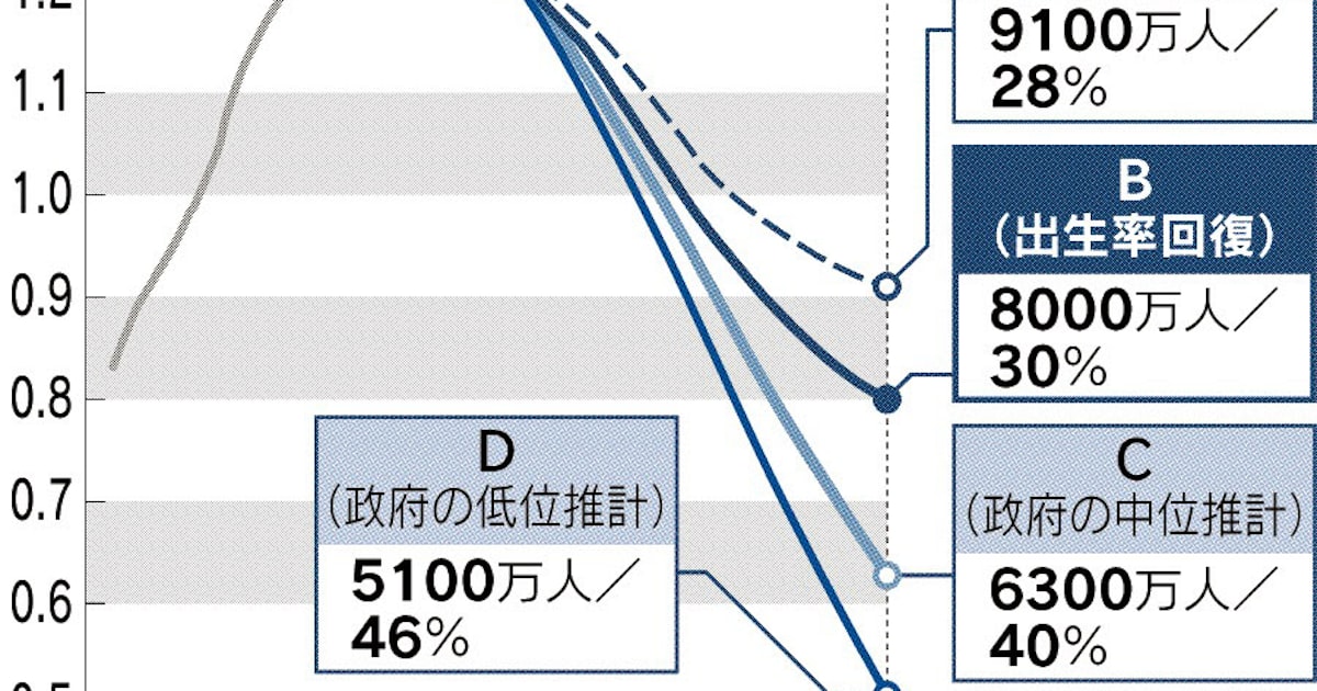 人口減抑制、野心的目標を 「8000万人で成長力」民間提言 2100年、政府試算は6300万人 若者の所得上げ出生率1.8に - 日本経済新聞