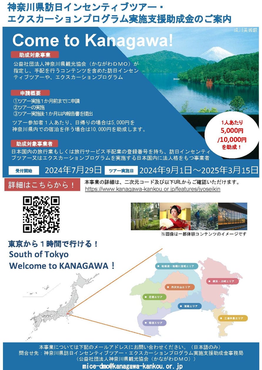 【観光事業者向け】神奈川県訪日インセンティブツアー・エクスカーションプログラム実施支援助成金のお知らせ · 公益社団法人 神奈川県観光協会(かながわDMO) …