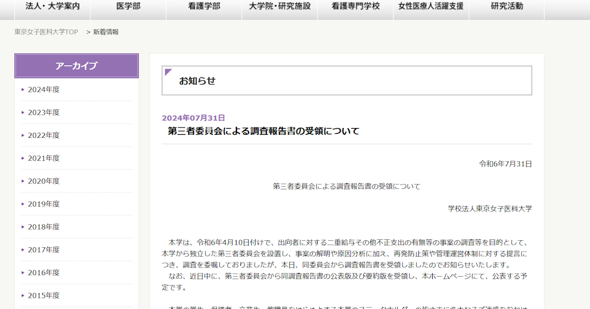 東京女子医科大学の同窓会組織で「不適切支出」 第三者委が指摘 - 日本経済新聞
