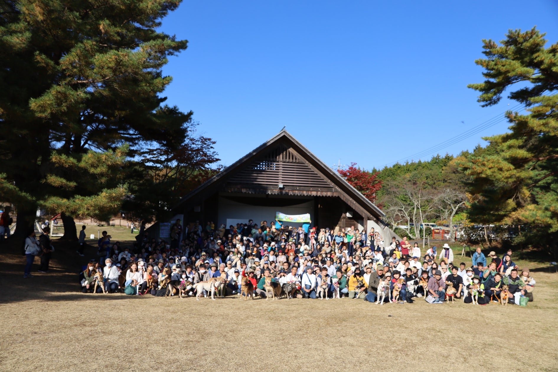 … 同窓会イベントを開催します。 集合写真。2023年度は、約220頭500人以上の方が集まってくださいました! ピースワンコ・ジャパンは、殺処分寸前の犬を保護し …