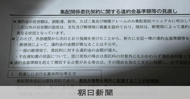 取材翌日、「違約金減額」の通知 日本郵便、公取委指導から半年後に – 朝日新聞デジタル