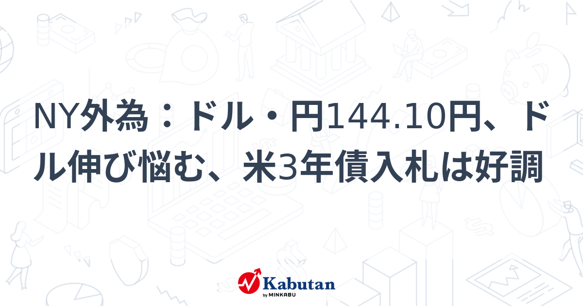 NY外為:ドル・円144.10円、ドル伸び悩む、米3年債入札は好調 – みんかぶ