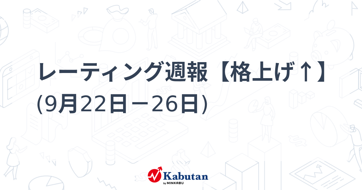 - レーティング週報【格上げ↑】 (9月22日-26日) | 特集 - 株探ニュース