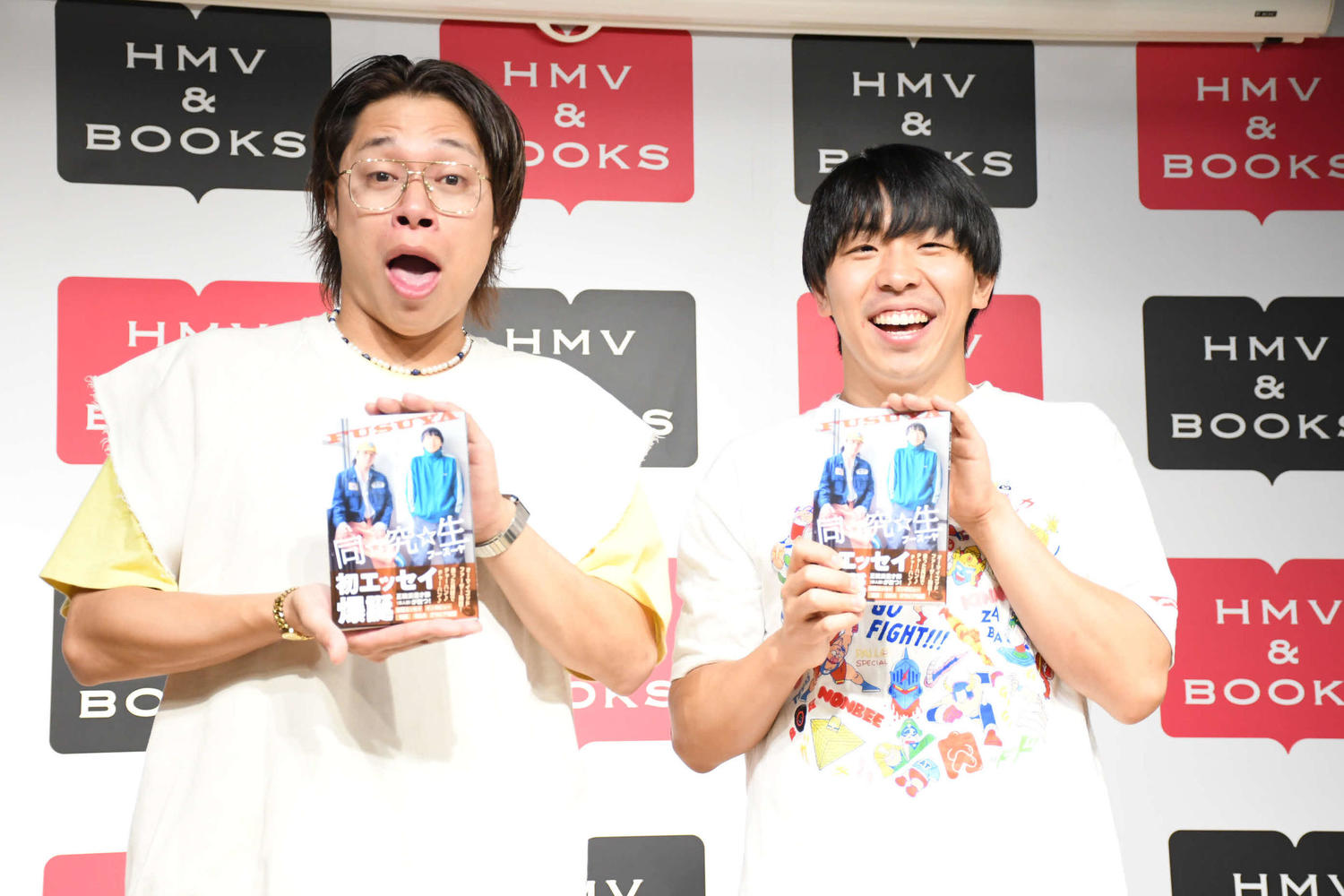 お笑いコンビ、フースーヤ(田中ショータイム=32、谷口理=32)が27日、大阪市のHMV&BOOKS SHINSAIBASHIで初エッセー「同☆究☆生~ブレないふたりのプチモアイ~」 …