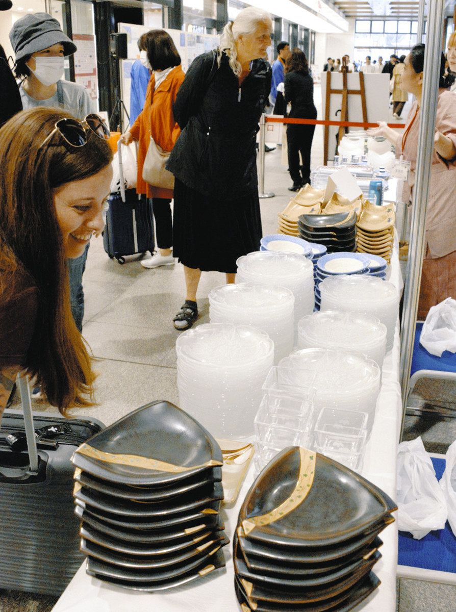 能登半島地震からの再建が進む七尾市の和倉温泉の旅館で使わなくなった食器や備品などを販売する「和倉復興めぐる市」が19日、金沢駅で開かれ…
