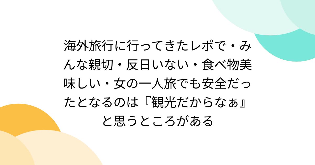 海外旅行に行ってきたレポで・みんな親切・反日いない・食べ物美味しい・女の一人旅でも安全だったとなるのは『観光だからなぁ』と思うところがある