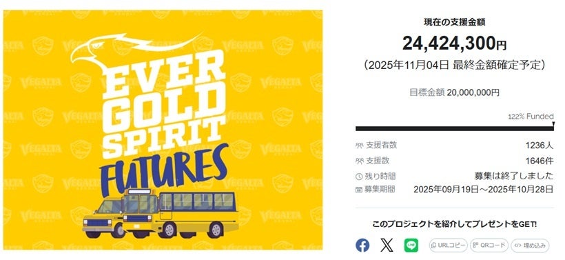 スポチュニティ株式会社のプレスリリース(2025年11月5日 09時00分)【目標達成率122%!】ベガルタ仙台 クラウドファンディング EVER GOLD SPIRIT FUTURESの …