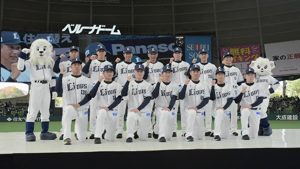 埼玉西武ライオンズは11月23日、『LIONS THANKS FESTA 2025』内で「2025ドラフト新入団選手発表会」を開催。新入団選手13名が登壇し、プロ入り後の目標を …