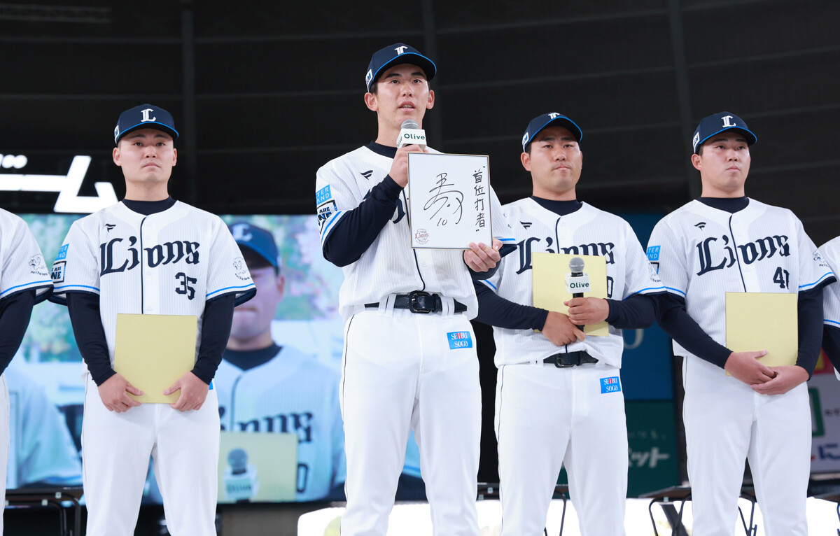 西武は23日、ベルーナドームで開催したファン感謝イベントで新人13選手(育成7人を含む)の入団発表を行い、ドラフト1位の小島大河捕手(明大、背番号10)は「目標は首位打者。持ち味の打撃を見てほしい