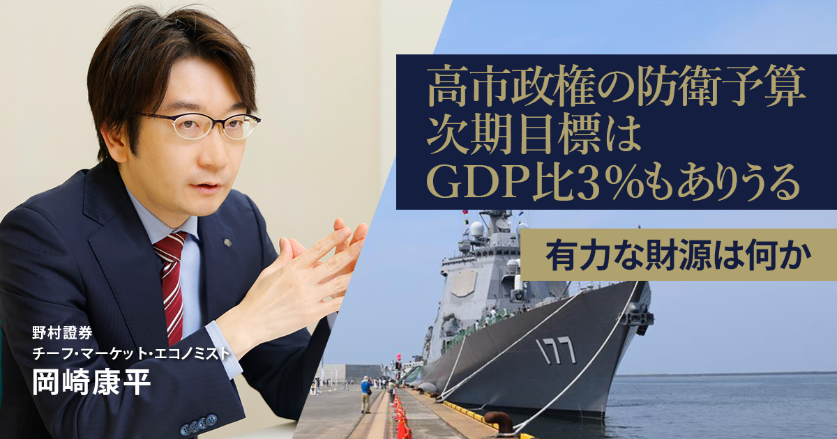 高市政権の防衛予算、次期目標はGDP比3%もありうる 有力な財源は何か 野村證券・岡崎康平