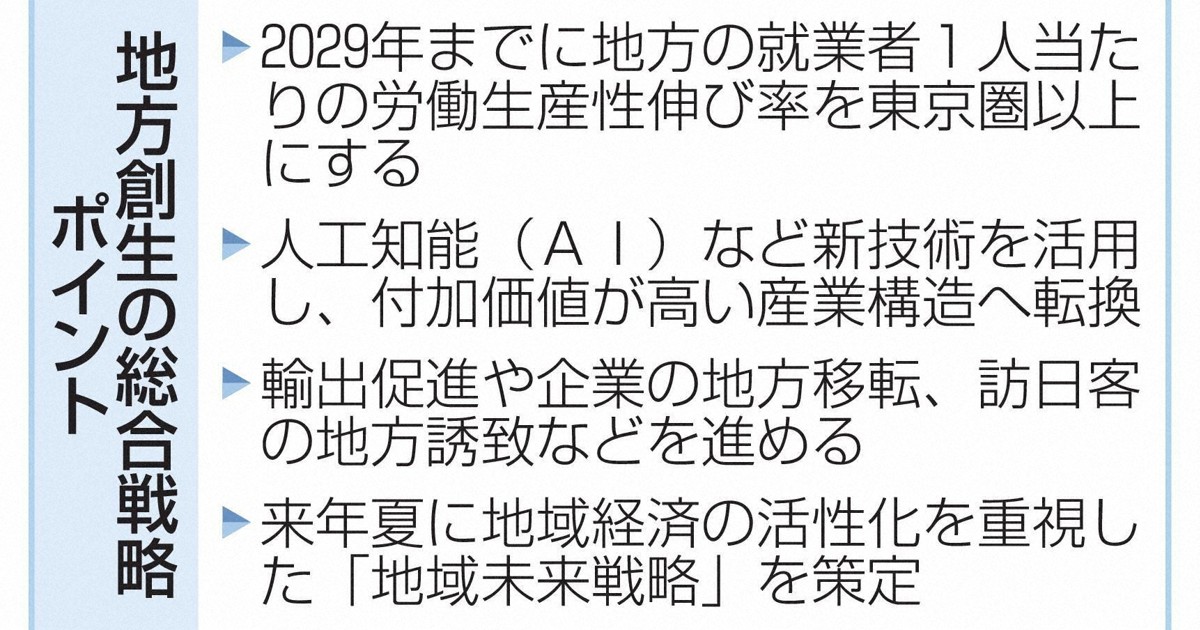 - 地方の生産性、東京圏以上が目標 政府、地方創生戦略を閣議決定 - 毎日新聞