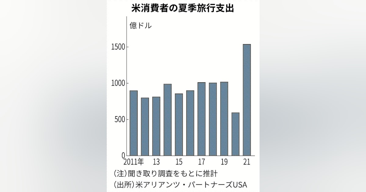 保険大手の独アリアンツ・グループは、米消費者による今夏の旅行関連支出が1537億ドル(約17兆円)となり、コロナ前の2019年に比べ5割増えるとの …
