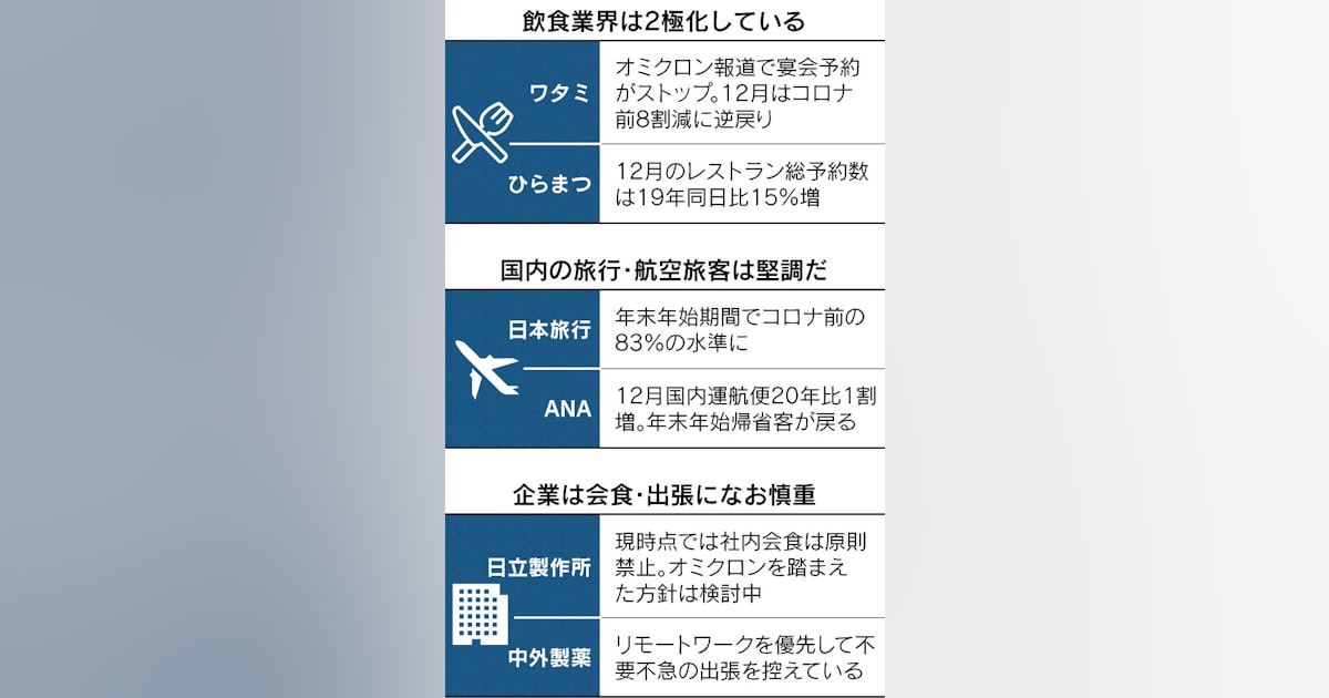 年末消費まだら模様 外食二極化、国内旅行は堅調 オミクロンが冷や水 - 日本経済新聞