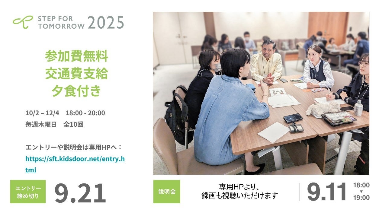 認定NPO法人キッズドア(以下:キッズドア)は、4回目の開催となる2025年度もキャリアプロジェクト「STEP FOR TOMORROW」を開催します。 経済状況や不登校 …