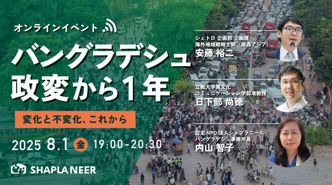 特定非営利活動法人シャプラニール=市民による海外協力の会のプレスリリース(2025年7月18日 13時30分)《オンライン無料イベント》バングラデシュ政変から1年 ~変化と不変化、これから~
