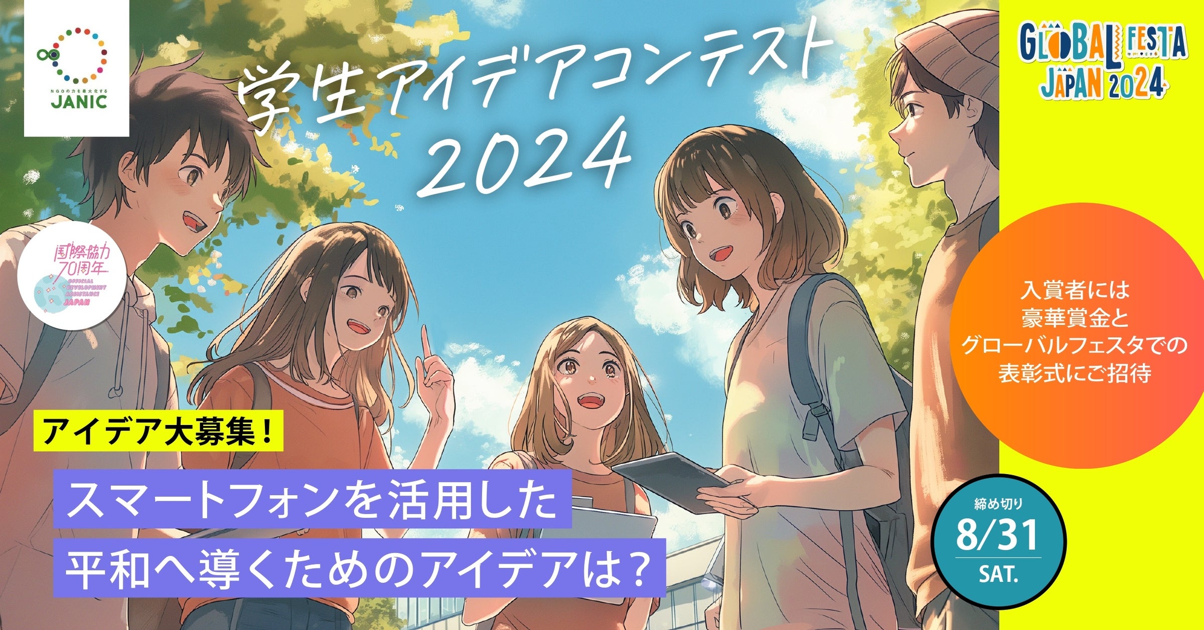 【8/31応募締切】スマートフォンを活用した平和へ導くアイディアを大募集。国内最大級の国際協力イベント「グローバルフェスタ JAPAN 2024」で学生アイデアコンテストを開催します。