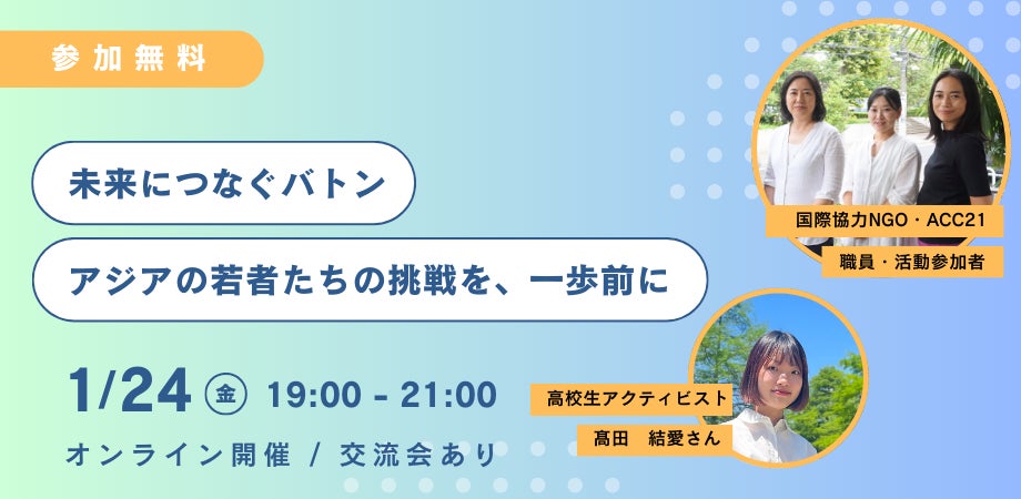 1/24夜オンラインイベント「未来につなぐバトン:アジアの若者たちの挑戦を、一歩前に」開催-国際協力を目指す若者のリアル、アジアの若者たちの挑戦とは?