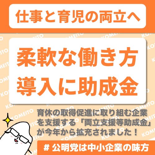 公明党 on X: " 仕事と育児の両立へ 〜柔軟な働き方導入に助成金〜 子育てしやすい職場環境 …