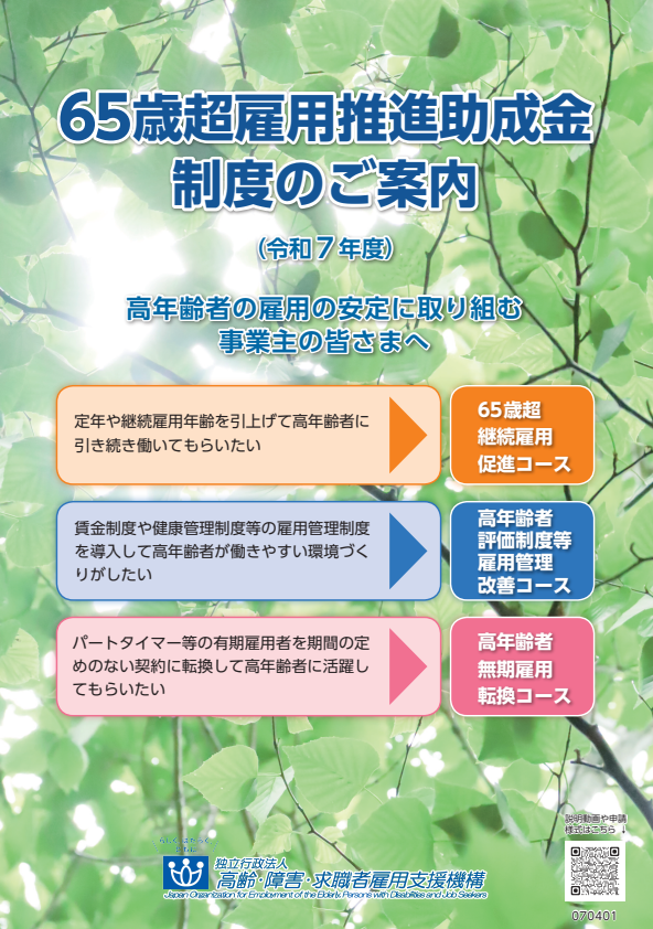 ■【更新】65歳超雇用推進助成金制度のご案内(令和7年度)(高齢・障害・求職者雇用支援機構)#オススメリーフ #助成金 #定年延長