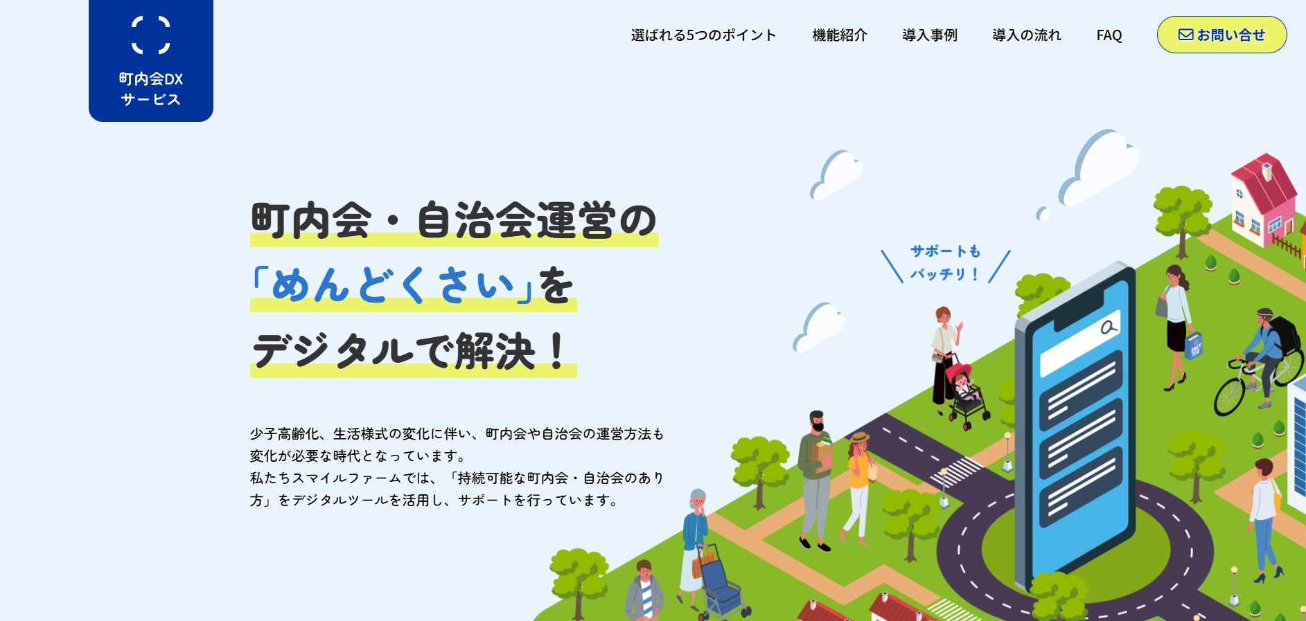 自治体・官公庁・民間企業等のデジタルマーケティングを支援する、新潟県新潟市の(株)スマイルファームは、持続可能な町内会・自治会の運営をDX化でサポート …