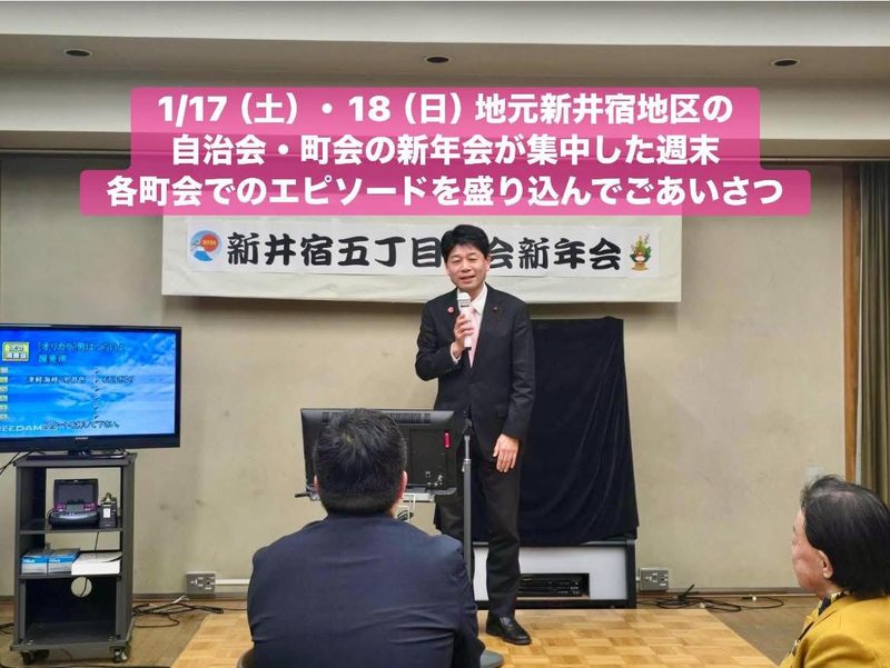 1月17日(土)・18日(日)は、地元#新井宿地区の自治会・町会のうち4つで新年会が集中する週... - 庄嶋たかひろ(ショウジマタカヒロ) | 選挙ドットコム
