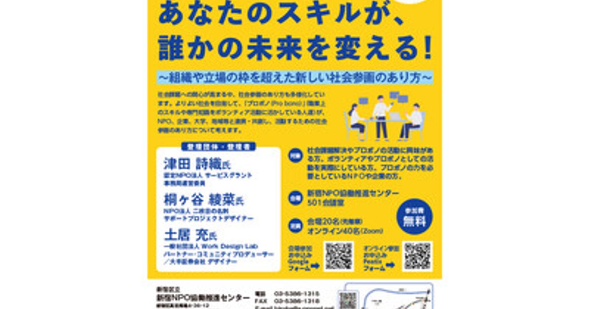 一般社団法人 NPO協働機構のプレスリリース(2026年1月28日 17時52分)【新宿NPO交流事業④】『NPO×プロボノ×ソーシャル・インパクト』「あなたのスキルが、 …